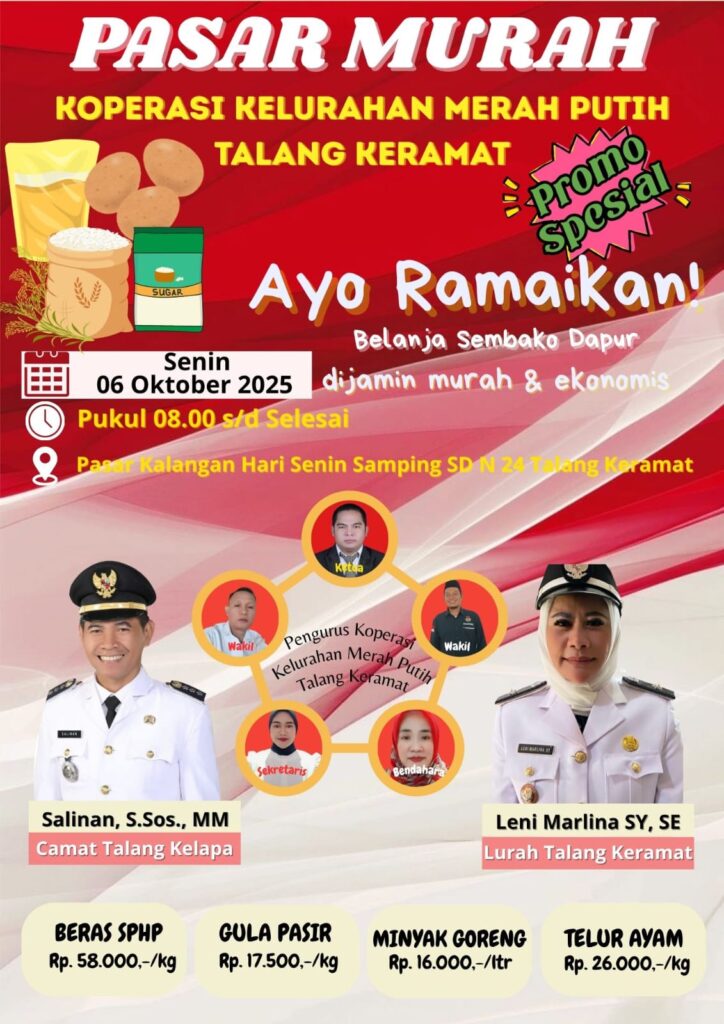 Koperasi Merah Putih Talang Keramat Mulai Beroperasi, Gelar Sembako Murah