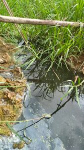 Apalagi saat musim hujan terkadang limbah itu sampai memasuki perkebunan masyarakat, dapat dilihat sendiri kondisi air yang ada dialirkan sungai-sungai kecil disana berwarna hitam, bahkan mengandung lumpur yang berminyak, terangnya.